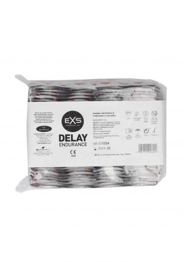 Natural latex teat ended and silicone lubricated condomEXS Endurance Delay condoms are 53mm straight walled and made of natural latex. Each condom is lubricated on the outside (although extra lube maybe required) and have a 1% Lidocaine anaesthetic lube on the inside which should be massaged into the head of the penis. EXS Endurance Delay condoms make you last longer during love making!