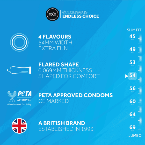 Nano Thin Retail Pack – 48 Pieces – Bevat 48 premium latex, EXS Nano Thin Condoms. EXS Nano Thin Condoms bieden een bijna huid-op-huid gevoel terwijl ze hetzelfde niveau van bescherming bieden als reguliere condooms. Ideaal voor geliefden die veilig van elkaar willen genieten zonder enige barri���res te voelen, EXS Nano Thin Condoms imponeren met een dikte van slechts 0,045 mm. Het product is net zo flexibel en sterk als een condoom met een dikkere wand en Nano Thin Condoms passen snugly op de penis. Gemaakt van natuurlijk latex, voelt het condoom soepel en zijdezacht aan op de huid. Een laag op siliconen gebaseerde glijmiddelen biedt uitstekende gladheid, vermindert wrijving en voorkomt irritatie, zelfs bij gebrek aan adequate natuurlijke lubricatie. EXS Nano Thin Condoms zijn geschikt voor vaginale, anale en orale seks. Extra glijmiddel kan indien nodig worden toegevoegd. EXS Nano Thin Condoms bieden een comfortabele pasvorm. Met een breedte van 53 mm en een lengte van 192 mm zijn ze perfect voor heren reguliere maat condoom nodig hebben.