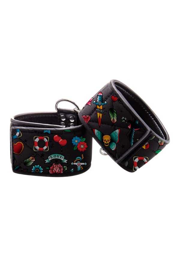 Printed Hand Cuffs – Old School Tattoo Style – Black