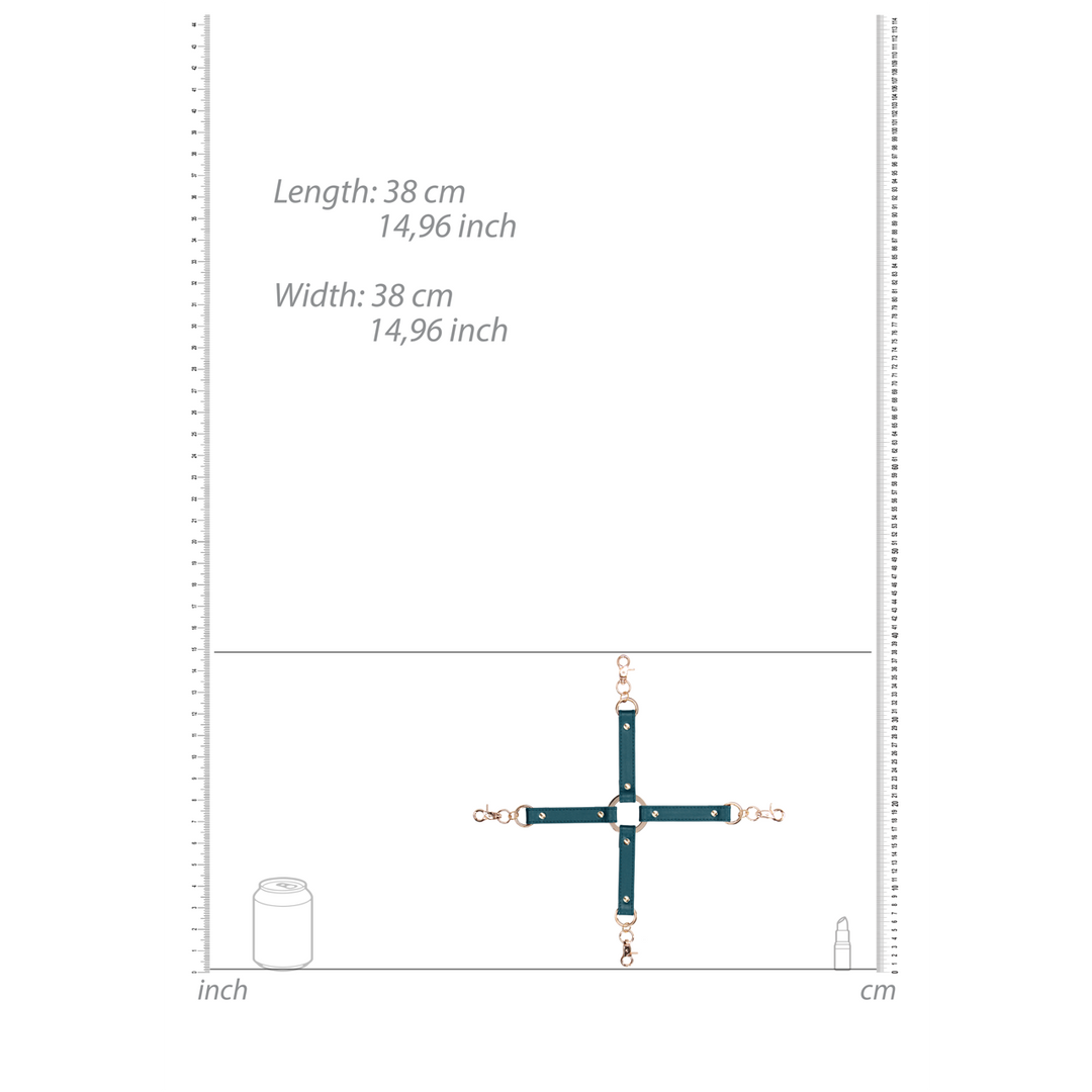 Kink in the Dark – Glow in the Dark Hog Tie Set – Add a kinky glow to your bedroom bondage fun! This Glowing Hog Tie Set makes it easy to tie your lovers limbs behind their back so you can enjoy their body to your hearts content. The white PU Leather and golden metal hardware add an elegant touch!The cuffs adjust to fit, and come included with D-Rings so you can attach additional straps, chains, and other restraints.