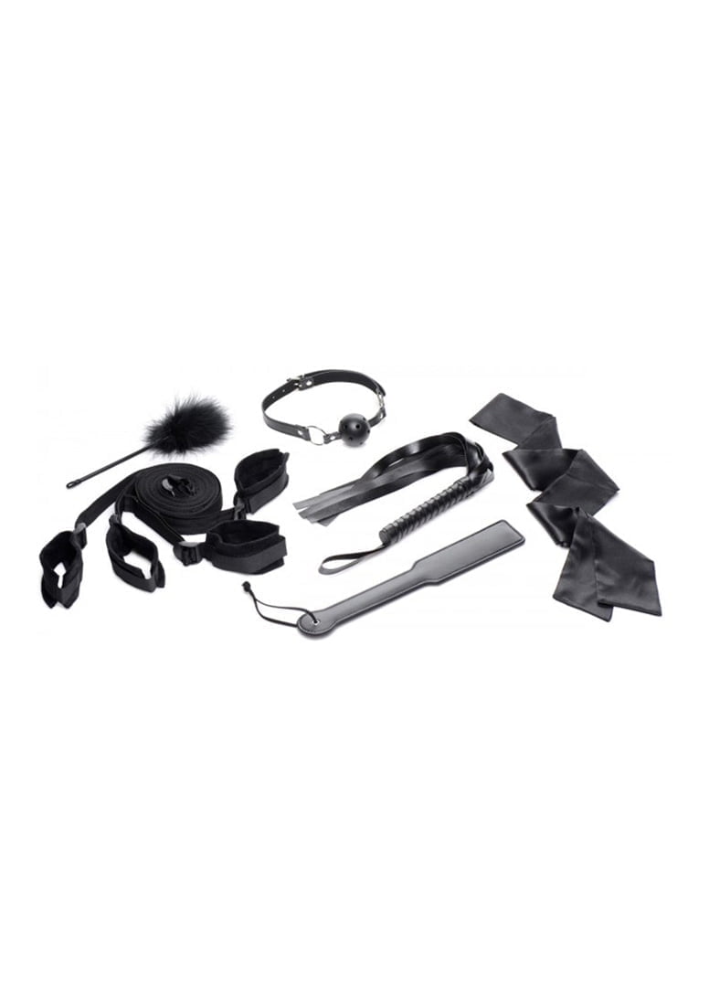 Alles wat je nodig hebt voor een bevredigende BDSM-scene is inbegrepen in deze bondagekit! De bedbeugels onder de matras houden het lichaam van je partner open zodat je hun lichaam kunt straffen en plezieren met de meegeleverde peddel, flogger of kietel. Verken de wereld van bondage in je eigen tempo en gebruik elk accessoire zoals je wilt!