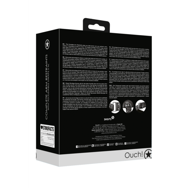 Dit bondage harnass geeft je totale macht over de armen van je partner, waardoor ze niet meer kunnen bewegen. Dit harnas wikkelt zich om de bovenarmen en rug, en houdt de armen stevig op hun plaats. Het is perfect voor kinky speeltijd wanneer jij de controle wilt nemen. De polsboeien en binder hebben verstelbare riemen met afsluitbare gespen, voor een goede pasvorm.
