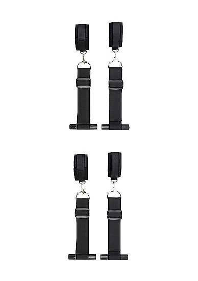 Bind jouw partner vast en geniet. Wordt geleverd met 4 verstelbare bevestigingen, 2 handboeien en 2 enkelboeien, 4 acryl deurbuizen en een satijnen oogmasker.