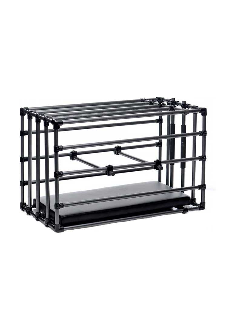 Immobiliseer uw sub in uw favoriete positie! De Kennel is een verstelbare kooi met een gevoerde plank en optionele positioneringsstaven. Sluit je speelgoed op in de gecoate metalen behuizing en ga creatief aan de slag! Klem hun hoofd tussen de voorste ingangsbalken met siliconen vulling, zodat ze perfect gepositioneerd zijn voor dwangvoeding.