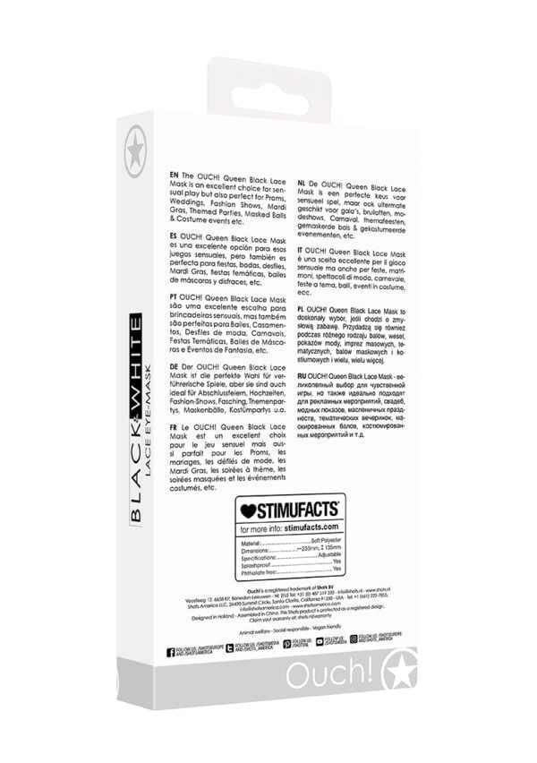 De OUCH! Queen Black Lace Mask is een perfecte keus voor sensueel spel, maar ook uitermate geschikt voor galas, bruiloften, modeshows, Carnaval, themafeesten, gemaskerde bals gekostumeerde evenementen, etc.