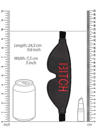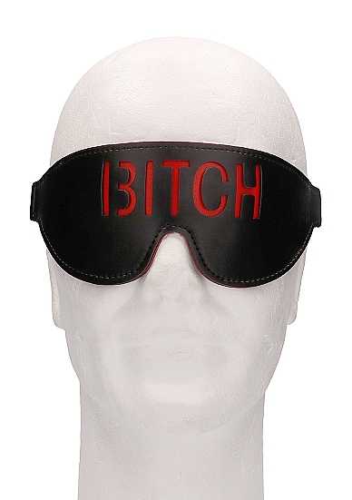 Houd je geliefde in het donker en op het toppunt van verwachting met dit leren oogmasker. Het woord BITCH is uitgesneden en tegen een rode laag in gestikt leer.
