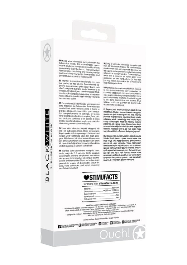 Door de lichtgewicht stof is ademen en horen geen enkel probleem, en wat het beste is… je slaaf kan jou nog steeds zien en kan zijn of haar mond nog steeds gebruiken!