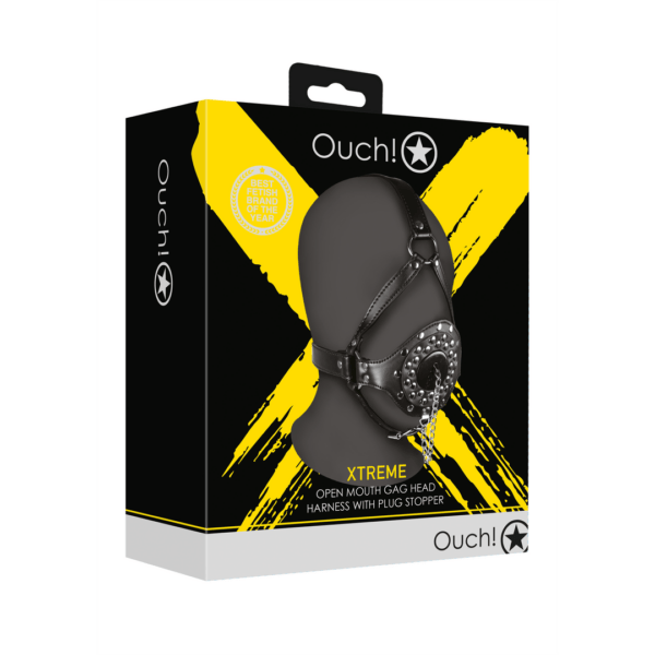 Open Mouth Gag Head Harness with Plug Stopper – Black