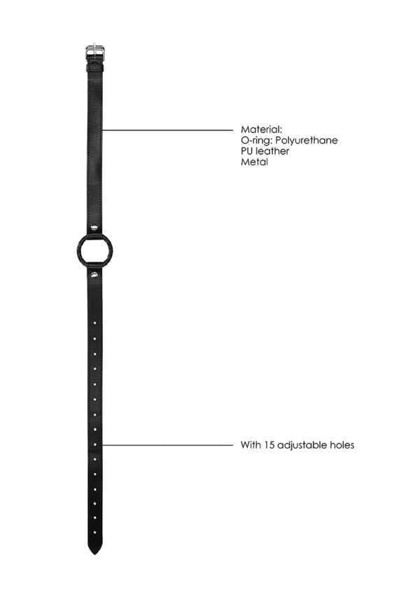 De O-ring heeft een binnendiameter van 3,2 cm (1,3 ) zit achter de tanden en laat de mond uitnodigend open. De riem heeft een totale lengte van 67,5 cm (27 ) inclusief O-ring en is 4,4 cm (1,8) breed.