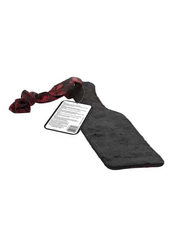 From California Exotic Novelties Scandal line. Everybody wants to be a little naughty. The Scandal Paddle facilitates sensual SandM play and includes both punishment and reward. Using a soft paddle gives the dominant role player the ability to deliver punishment with a few well placed swats on their partners backside or reward obedience with teasing tickling caresses. Scandal Paddle is double stitched dual sided sturdy paddle. Soft and plushy on one side with designer fabric on the other. Includes adjustable wrist tie.