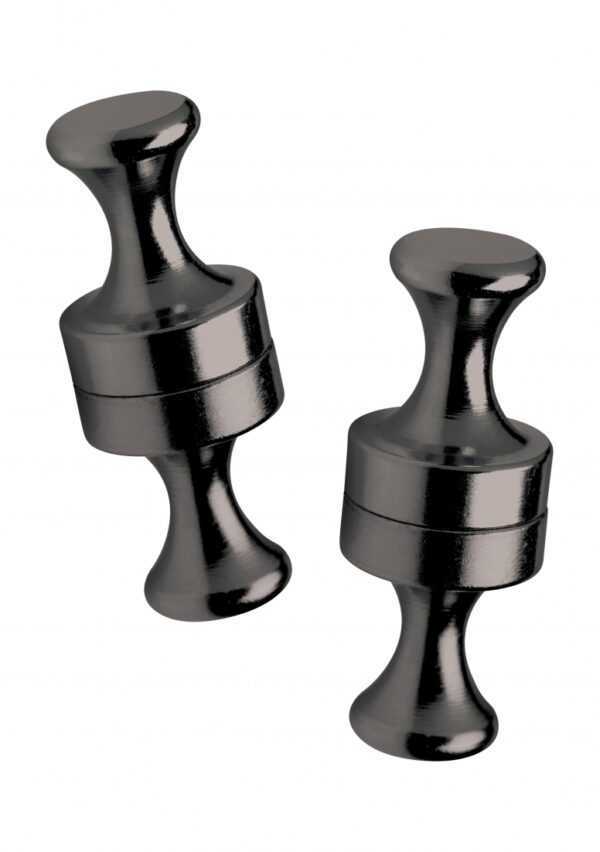 Vang hun ondeugende stukjes in je vizier! Ervaar piercingplezier van deze magnetische klemmen. De gun metal finish en uitgesproken vorm zorgen voor een aantrekkelijk uiterlijk dat eruitziet als een echte piercing, maar aanvoelt als een snuifje! Er worden twee magneetsets meegeleverd voor gebruik op beide tepels, op de schaamlippen en meer. Draag ze tijdens het voorspel of zelfs tijdens seks. De druk zal de sfeer van je meest sexy sessies verhogen. Gemaakt van nikkelvrij aluminium voor een slanke, verleidelijke esthetiek. Elke kant is .8 inch lang, .6 inch in diameter