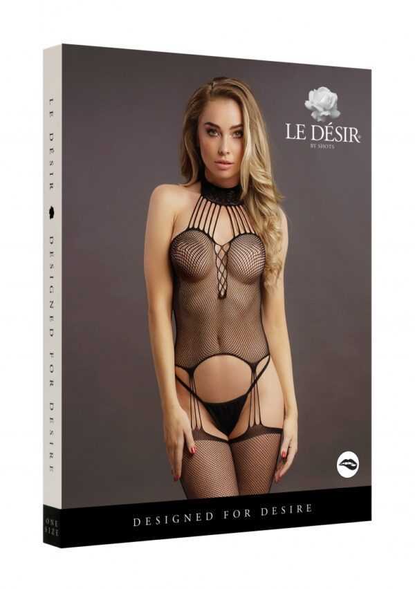 Suspender Fishnet Choker Bodystocking – Black – O/S