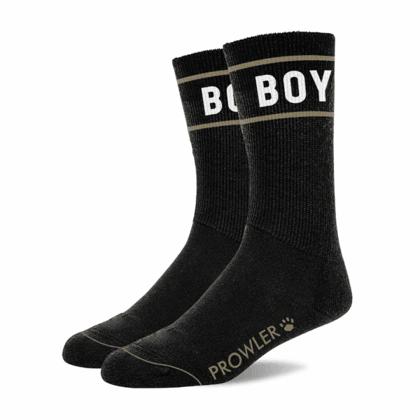 Btm Socks – White/Blue – Deze Prowler BTM sokken zijn de perfecte manier om je liefde voor het bottom zijn te verkondigen. Ze hebben een klassieke witte kleur met een blauwe band, hiel en tenen, en het Prowler-logo langs de onderkant van elke sok. Draag ze met alles en je zult de hele dag comfortabel blijven. Trek deze klassieke witte Prowler BTM sokken aan voor een extra boost van sexy, sportieve stijl. Dit paar comfortabele witte sokken ziet er geweldig uit, of je ze nu met iets of helemaal niets draagt!