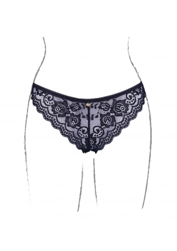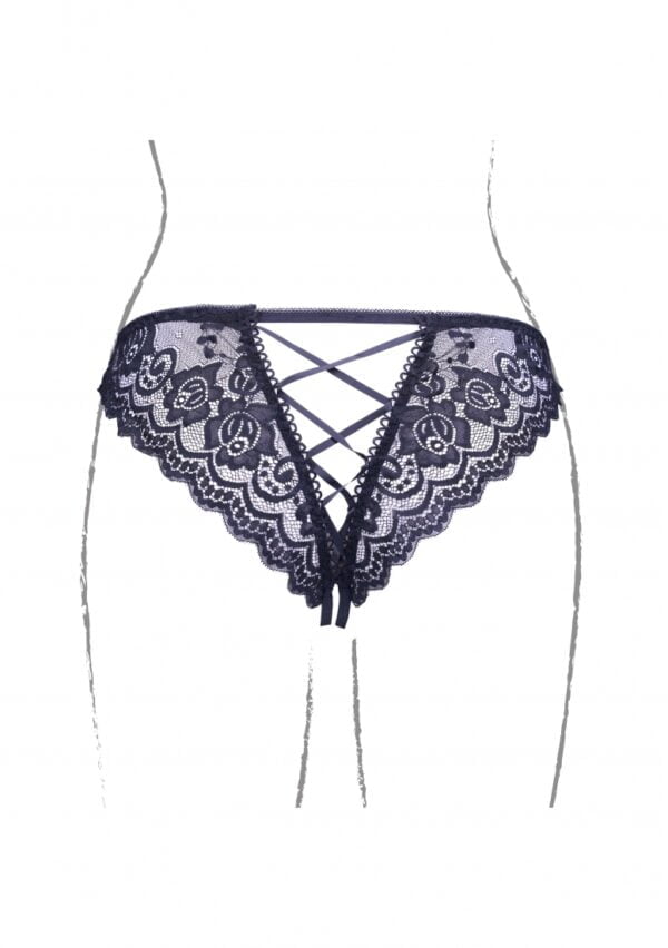Het mooie kanten ontwerp van dit broekje geeft je bijna het gevoel dat je een lief meisje bent, totdat je omdraait. De achterkant van dit broekje is niet alleen open bij de billen, maar ook bij het kruis. Een perfecte mix van zoet en zout.