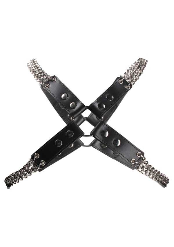 Het harnas maakt gebruik van een combinatie van echt leer en roestvrij staal om je die stoere look te geven. Het kan natuurlijk ook over je kleding worden gedragen om je bedoelingen duidelijk te maken. Het harnas heeft een O-ring aan de voor- en achterkant voor het eenvoudig bevestigen van accessoires. De leren en roestvrijstalen kettingriemen zijn gemakkelijk verstelbaar met stevige gespen voor een perfecte pasvorm. Dit prachtig vormgegeven harnas is alleen verkrijgbaar in het zwart.