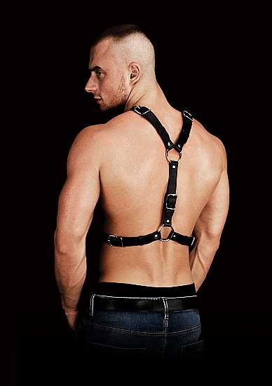 Op beide zijden van dit centraal stuk zijn er nog twee o-ringen en gebonden lederen riemen van hoge kwaliteit die met elkaar verbonden zijn onder de armen en op de schouders.