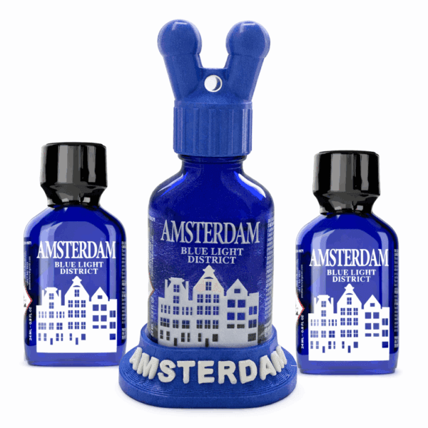 3x Amsterdam Blue Light District Poppers 24ml + Sniffer + No Flip Holder