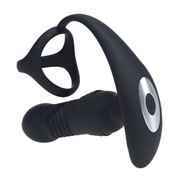 Afstandsbediening Vibrerende Duwende Kom-Hier Siliconen Prostaat Stimulator met Cockring – Zwart – Experience full-body stimulation with this innovative Triple Motor Prostate Stimulator. Designed for ultimate performance, it combines a vibrating shaft, come-hither prostate massager, and thrusting anal beads���all powered by three next-gen F1 motors���to deliver powerful, simultaneous stimulation to the prostate, penis, and balls. The dual-ring design adapts to most sizes, enhancing erection strength and stamina, while locking in the toy for optimal pressure. Made from premium hypoallergenic silicone, it���s body-safe, rechargeable, and engineered to deliver precision control and mi
