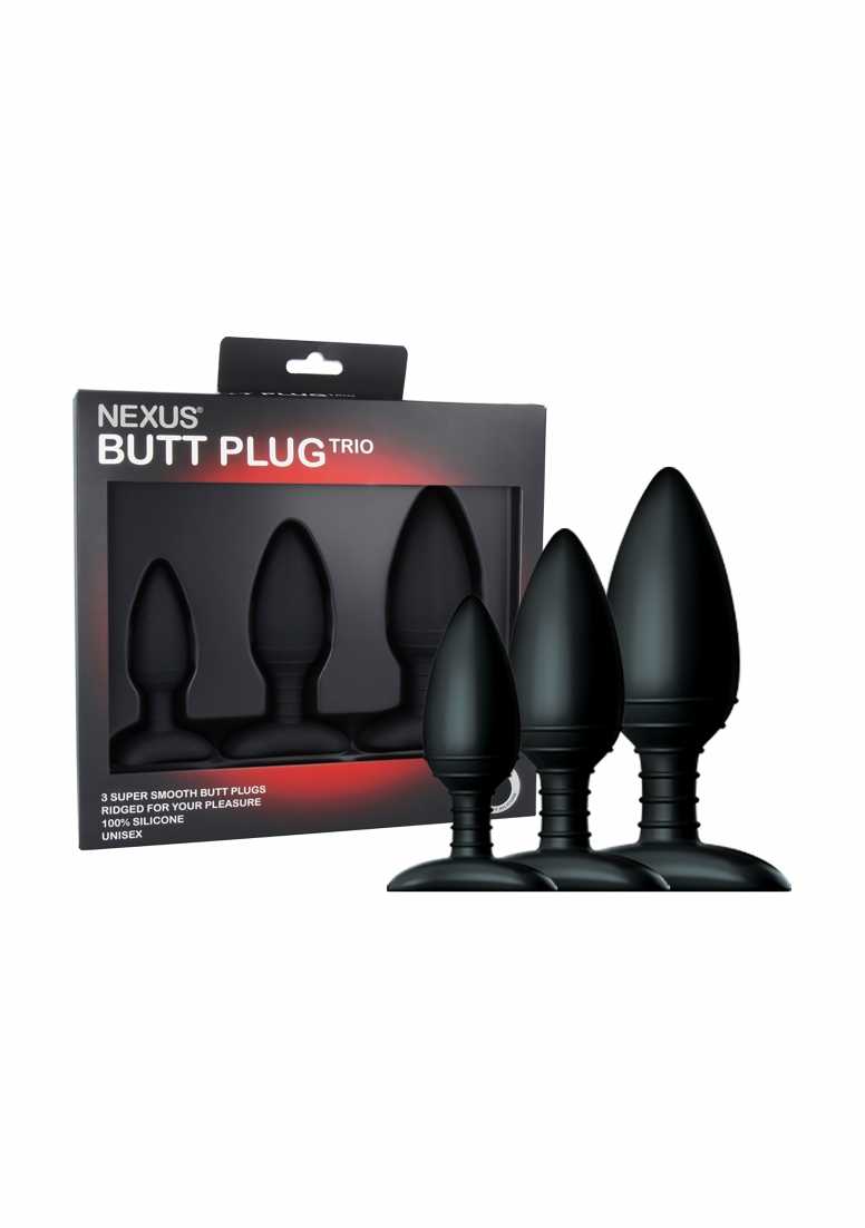 BUTT PLUG TRIO 3 Solid Silicone Butt Plugs S M L - Black