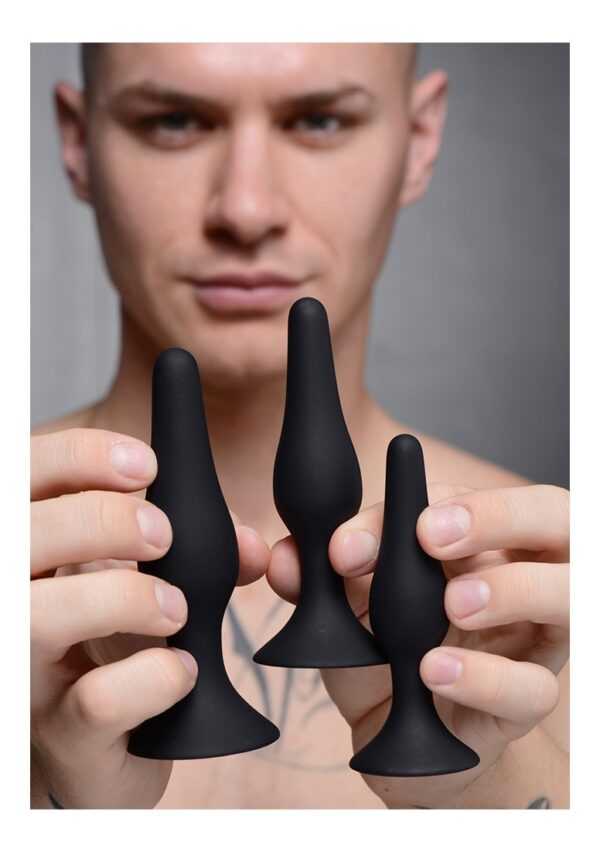 Triple Spire Tapered Silicone Anal Trainer Set of 3 – Black