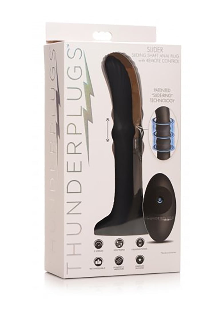 Sliding Shaft Silicone Vibrator w/ Remote - Black