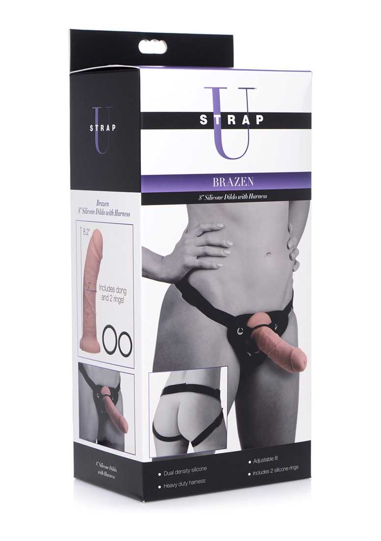 Brazen 8" Silicone Dildo with Harness - Flesh