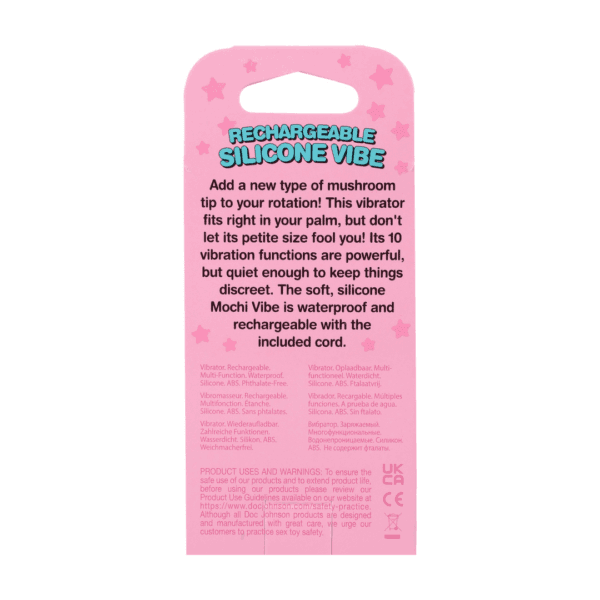 Mushroom Vibe – Oplaadbare Siliconen Vibrator – Paars – Add a new type of mushroom tip to your rotation! This vibrator fits right in your palm, but don’t let its petite size fool you! Its 10 vibration functions are powerful, but quiet enough to keep things discreet. The soft, silicone Mochi Vibe is waterproof and rechargeable with the included cord.