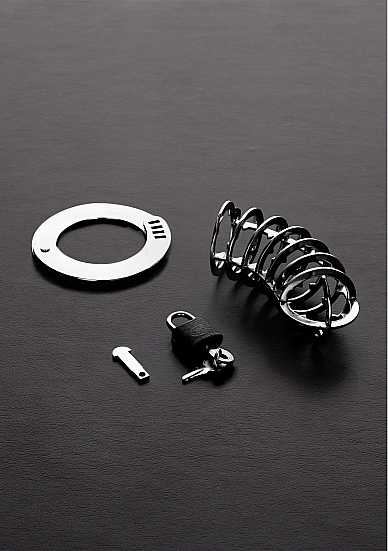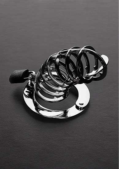 Wat geef je de man die alles al heeft? De Spike Cage natuurlijk! Dit veelzijdige apparaat biedt het beste van twee werelden, met een roestvrijstalen spikes cock cage die is gemaakt om veel meer te zijn dan alleen een kuisheidsapparaat. De kooi is bovengemiddeld lang en is ontworpen met zeven spikes ringen, beginnend bij de basis en eindigend met vier spikes in de kop van het apparaat. De meegeleverde ring is verstelbaar dankzij het handboeien-stijl vergrendelingsmechanisme. De Spike cage zelf wordt bevestigd aan een verstelbare stalen ring door middel van een enkele pin die is ontworpen om het meegeleverde slot op zijn plaats te houden. De anatomisch gebogen cock cage is 14 cm lang met een diameter van 3,5 cm