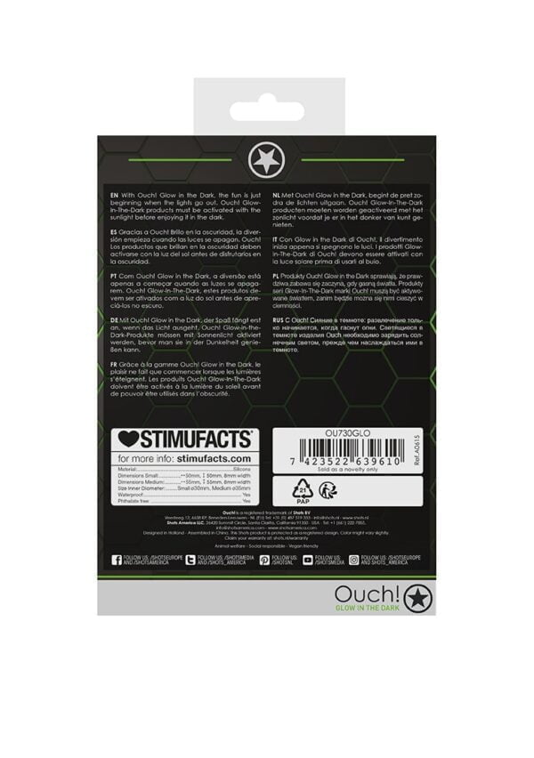 De ringen verbeteren je seksuele daden en brengen vele mogelijkheden met zich mee door de flexibiliteit. Ouch! Glow-In-The-Dark producten moeten worden geactiveerd met het zonlicht voordat je er in het donker van kunt genieten.