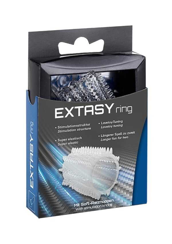 Meer plezier voor HAAR meer stabiliteit voor HEM! Met zijn zachte stimulerende noppen geeft de EXTASTYring volledige stimulatie voor haar en maximale stabiliteit voor hem. De talloze zachte stimulerende noppen op de superelastische EXTASYring zorgen voor spannende sensaties in alle intieme zones! De EXSTASY-ring kan het genot aangenaam vergroten.